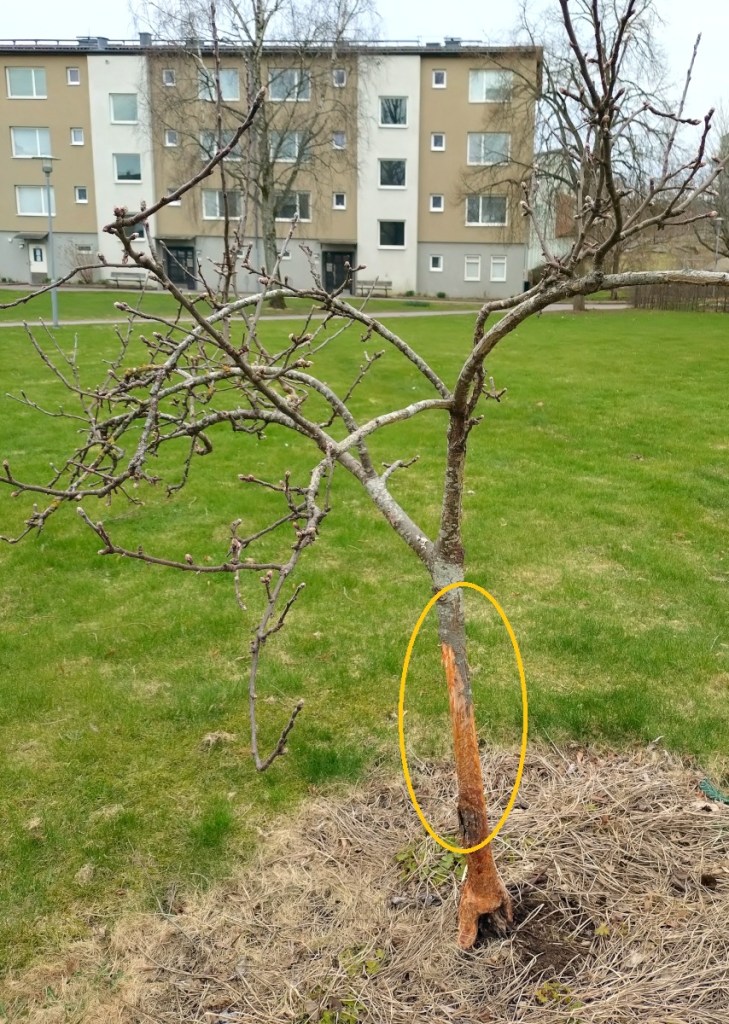 Ett ungträd har vandaliserats, ingen har erkänt dådet.