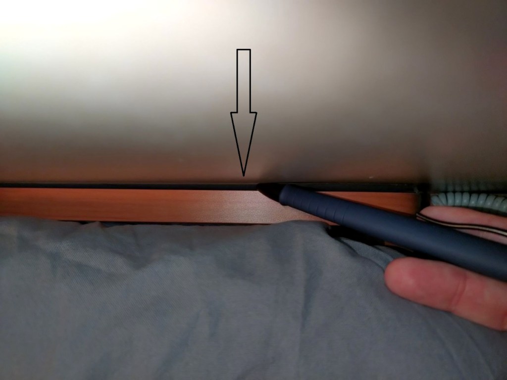Några dagar senare och av en helt annan orsak så behövde jag ta en djupare titt i hyttens skrymslen. Döm om min förvåning när jag fann mitt bokmärke fastkilat och möjligt att få loss! Ordningen är därmed återställd och tillvaron tillbaka till det normala.